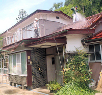 高圧洗浄機を使って、屋根・壁・庭舗装部分の洗浄を行った。