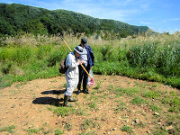 当会では、以前から山林の除染の実証実験を重要な課題と考えており、最初の調査においても山林の放射線量測定を行っている。